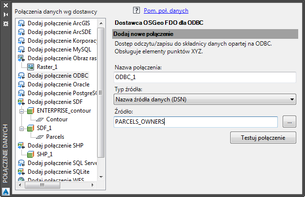 Łączenie z bazą danych Access z programu AutoCAD Map 3D