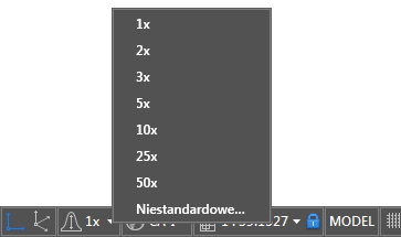 - Na pasku stanu, na dole mapy, kliknij strzałkę w dół obok przycisku Przeskalowanie pionowe.