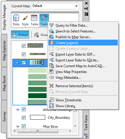 Użyj menu Narzędzia na karcie Menedżer wyświetlania do utworzenia legendy.