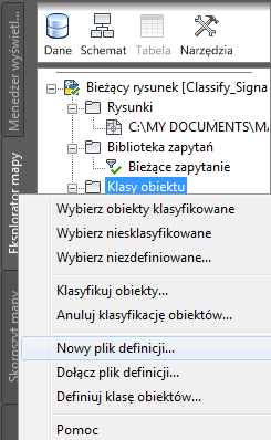 Użyj karty Eksplorator mapy w oknie zadań w celu utworzenia pliku definicji klasy obiektów . Ten plik można utworzyć w dowolnej mapie.