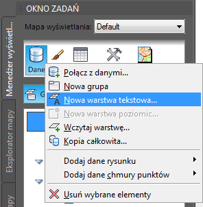 Warstwa tekstu jest tworzona w Menedżerze wyświetlania w sposób bardzo podobny do warstwy rysunku.