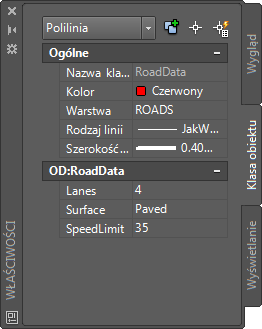 Na karcie Klasa obiektu palety Właściwości wyświetlane są właściwości skojarzone z klasą wybranego obiektu.