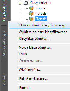 Kliknij prawym przyciskiem myszy odpowiednią klasę obiektów, aby utworzyć obiekt w tej klasie.