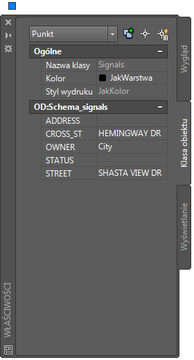 Podczas udostępniania obiektów z pliku DWG na mapie tracone są informacje dotyczące stylu. Punkty nie mają stylu, dlatego nie można ich wyświetlać na nowej mapie. W celu wyświetlania sygnałów należy przypisać do mapy styl punktu.