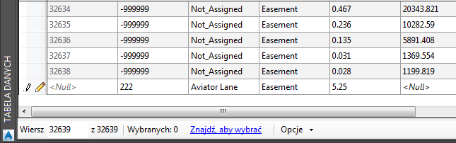 W oknie Tabela danych dodaj informację o działce.