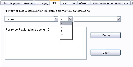 Filtry służą głównie do określania, które elementy powinny być testowane, lub definiowania wyjątków określających, które elementy nie powinny być testowane.