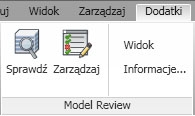 Program Autodesk Revit Model Review działa na podstawie dwóch funkcji: Sprawdź i Zarządzaj.Obydwa te narzędzia można znaleźć na karcie Dodatki