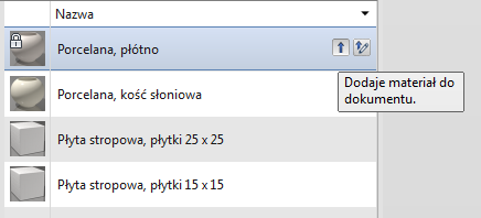 Aby dodać materiał do bieżącego projektu, najpierw znajdź materiał w istniejącej bibliotece, a następnie użyj jednej z poniższych metod:
