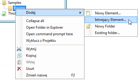 Nazwij folderu. W tym przykładzie nazywa się on Samples. Następnie prawym przyciskiem myszy kliknij pozycję folderu Samples i kliknij kolejno opcję Add