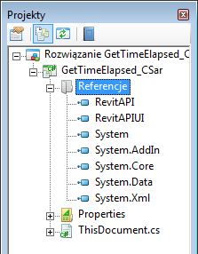 W tym przykładzie odświeżone środowisko IDE Project Explorer dla GetTimeElapsed_CSharp zawiera: