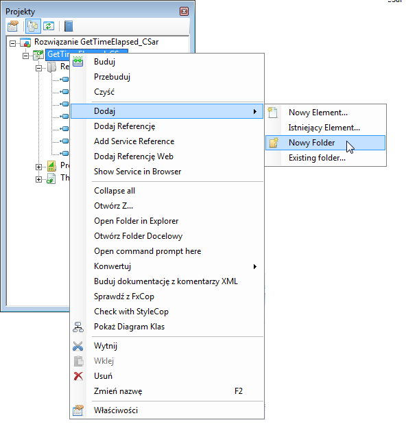 W Project Explorer środowiska IDE kliknij prawym przyciskiem myszy projekt makra i wybierz opcję Add