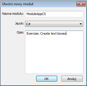 Otwarte zostanie okno dialogowe Utwórz nowy moduł.