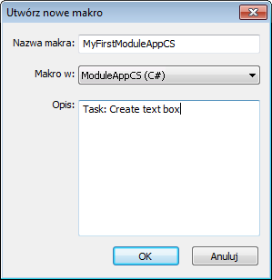Otwarte zostanie okno dialogowe Utwórz nowe makro.
