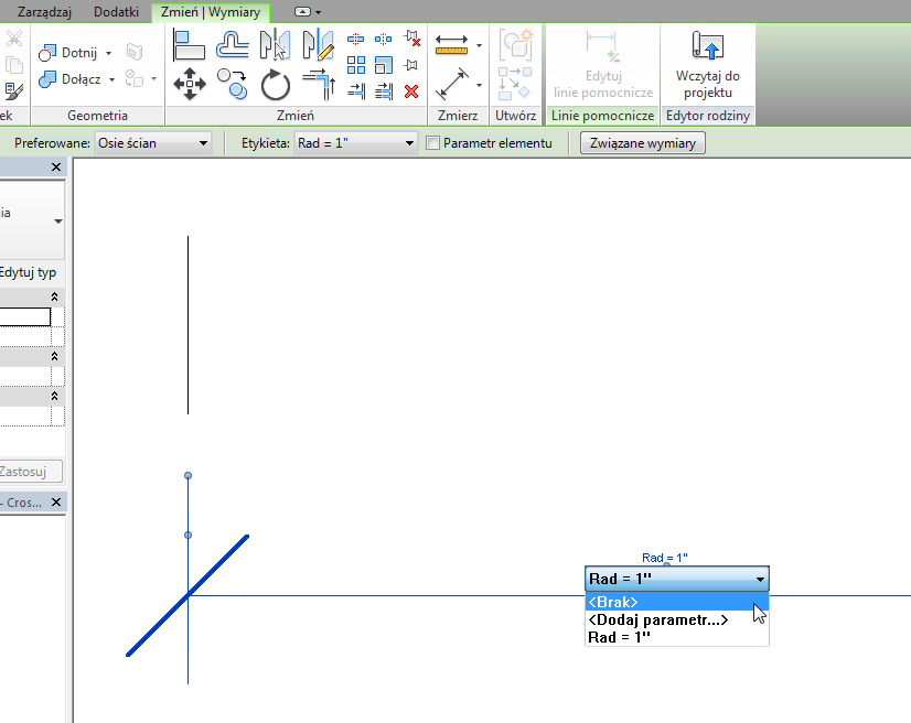 W Edytorze rodzin lub w środowisku projektowania koncepcyjnego można edytować stałe wymiary do zastosowania etykiety.
