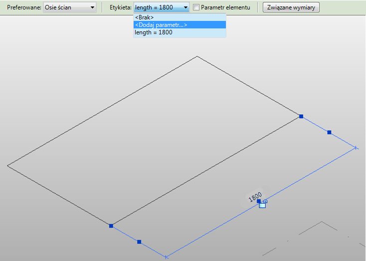 Uwaga: Po dodaniu etykiety do wymiaru (i usunięciu zaznaczenia) można zmienić jego wartość. Kliknij prawym przyciskiem myszy wymiar z etykietą, wybierz polecenie Edytuj długość, a następnie wprowadź nową wartość.