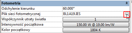 - W obszarze Plik bryły fotometrycznej kliknij kolumnę Wartość.