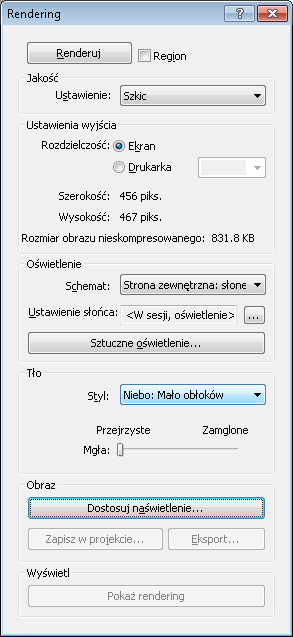 Jeśli w bieżącej sesji otwierano okno dialogowe Rendering, gdy ostatnio był otwarty widok 3D, zostanie ono wyświetlone ponownie.