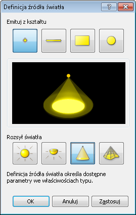 Zostanie wyświetlone zostanie okno dialogowe Definicja źródła światła.