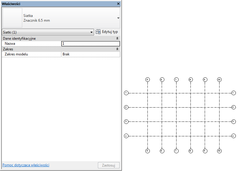 Oś programu program AutoCAD Architecture jest tworzona na płaszczyźnie najniższego poziomu modelu programu Revit, ale nie niżej niż dół obrysu modelu w widoku. Bloki wielu widoków dla znaczników siatki są zakotwiczone na końcach linii siatki i zostaną utworzone na tej samej płaszczyźnie.