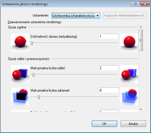 Zostanie wyświetlone okno dialogowe Ustawienia jakości renderingu.