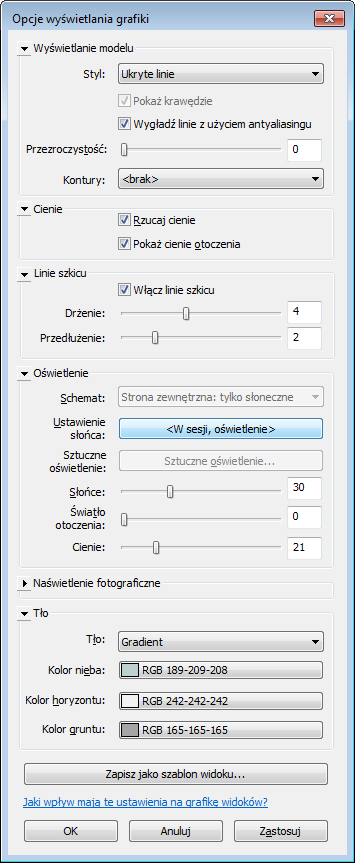 W widoku tym użyto następujących ustawień w oknie dialogowym Opcje wyświetlania graficznego: