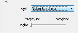 - W obszarze Tło okna dialogowego Rendering dla pozycji Styl wybierz w opcji Niebo pozycję wskazującą żądaną liczbę chmur.