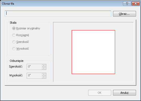 - W oknie dialogowym Obraz tła określ właściwości Skala i Odsunięcie, a następnie kliknij przycisk OK.