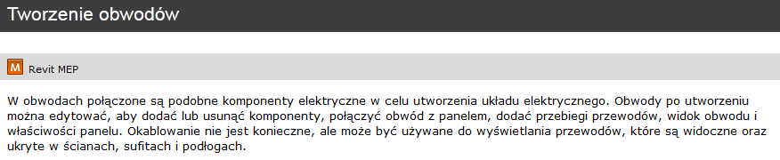 W tym przykładzie legenda określa, czy cały temat ma zastosowanie do programu Revit MEP i funkcji z nim powiązanych w programie Autodesk Revit.