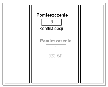 Komunikat ten pojawia się w obszarze rysunku, gdy występuje konflikt między pomieszczeniami w modelu głównym i pomieszczeniami w drugorzędnym wariancie projektu.