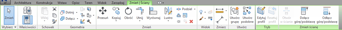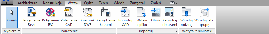 Wstążka jest wyświetlana podczas tworzenia lub otwierania pliku. Zawiera ona wszystkie narzędzia potrzebne do utworzenia projektu lub rodziny.