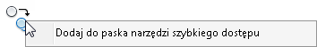 Na wstążce przejdź do narzędzia, które chcesz dodać. Kliknij narzędzie prawym przyciskiem myszy i wybierz polecenie Dodaj do paska narzędzi szybkiego dostępu.