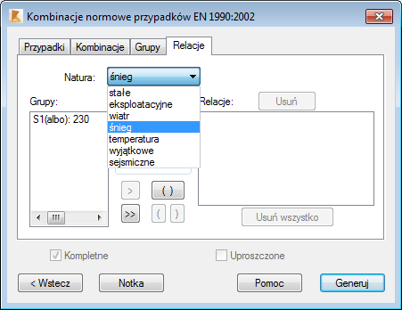 Dowiedz się, w jaki sposób automatyczne generować kombinacje normowe przypadków obciążeń.