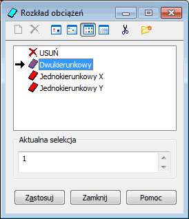 W środkowej części okna znajduje się lista z trzema dostępnymi typami rozkładów obciążeń ze względu na kierunek obciążenia: