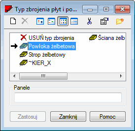 Jeżeli w aktywnej liście typów zbrojenia nie ma zdefiniowanego żadnego typu zbrojenia lub gdy do istniejącej listy typów zbrojenia dodany ma zostać nowy typ, to należy kliknąć ikonę Parametry nowego typu zbrojenia.
