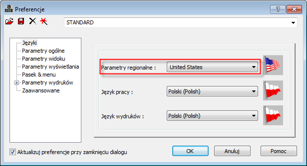 Program uruchomi się ponownie, a ustawienia regionalne dla profili, materiałów i norm zostaną zaktualizowane zgodnie ze standardami amerykańskimi. W tym przypadku będą używane jednostki brytyjskie.