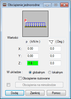 (Obciążenie jednorodne), jak pokazano poniżej.