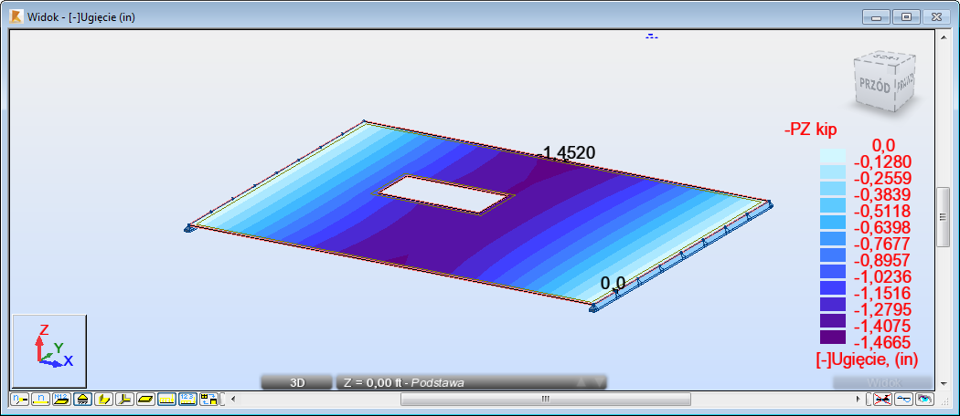 W widoku jest wyświetlana mapa ugięć dla panelu, tak jak pokazano poniżej.