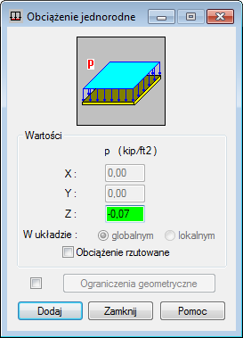 Zostanie otwarte okno dialogowe Obciążenie jednorodne.