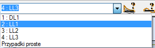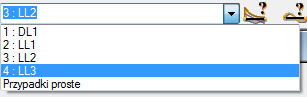 Na pasku narzędzi Wybór, w polu Wybór przypadków, rozwiń menu Przypadki i wybierz opcję 4: LL3.