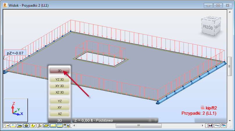 W obszarze rysunku pojawia się wartość obciążenia LL3.