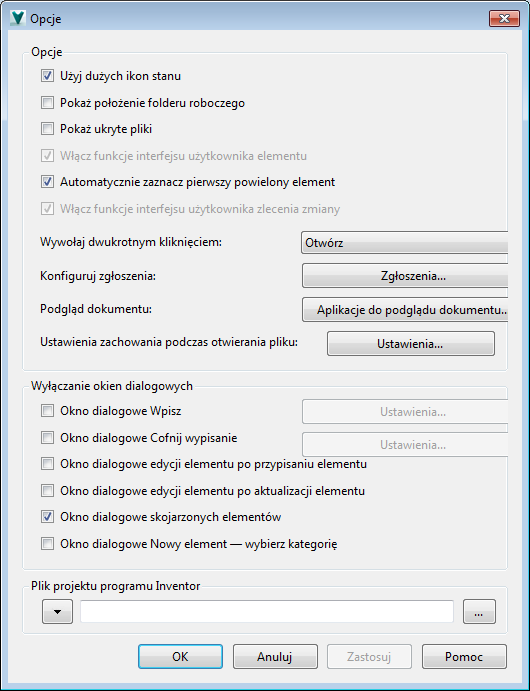 - Pole Plik projektu programu Inventor