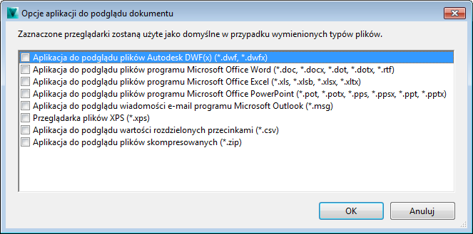 - Lista aplikacji zainstalowanych w bieżącym systemie znajduje się w oknie dialogowym Opcje aplikacji do podglądu dokumentu. W tym miejscu można umożliwić niektórym aplikacjom podgląd dokumentów w Panelu podglądu.