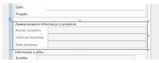 W tym przykładzie nowe pola są tworzone i grupowane wg pola GroupBox. Zawartość GroupBox jest włączana lub wyłączana w zależności od tekstu wprowadzonego w projekcie pola TextBox.