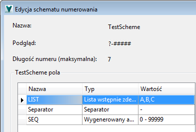 Załóżmy, że jest dostępny następujący schemat numerowania o nazwie TestScheme.