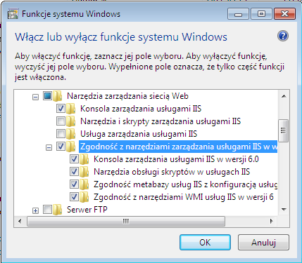 Sprawdź, czy jest zainstalowana usługa IIS 6 Management Compatibility.