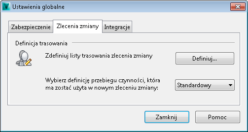 Dostęp do karty Zlecenia zmiany w oknie dialogowym Ustawienia globalne
