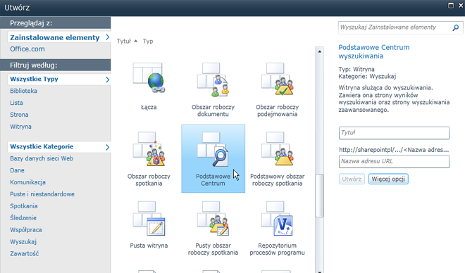 Konfigurowanie witryny wyszukiwania