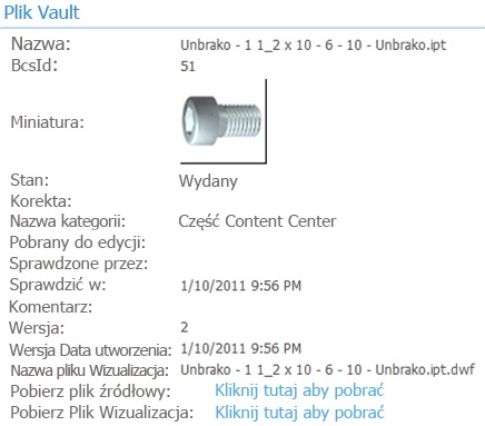 Integrację z programem SharePoint 2010 uzyskuje się za pomocą usług BDC (Business Data Connectivity) firmy Microsoft przy użyciu programu Autodesk Vault Professional z programem Microsoft SharePoint 2010.