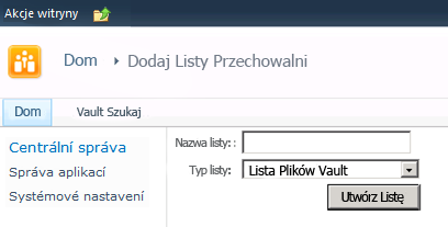 Należy skonfigurować witrynę wyszukiwania, aby program Vault mógł znajdować pliki w repozytorium.