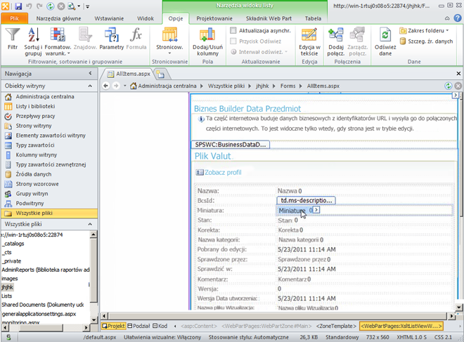 SharePoint Designer otworzy stronę profilu w trybie edycji. Wybierz komórkę Miniatura.